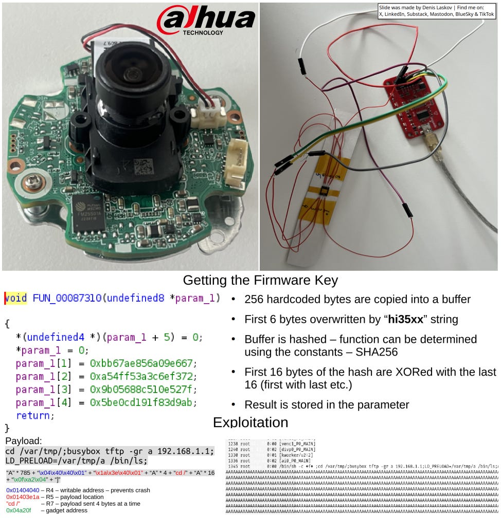 Security researcher Alexandru Lazar presents his research journey: how he extracted and decrypted firmware, and then analyzed and exploited vulnerabilities in Dahua (DHA) security cameras - the second-largest manufacturer of video surveillance equipment in the world.