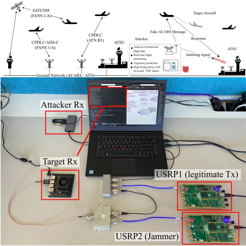 On the Implications of Spoofing and Jamming Aviation Datalink Applications [PDF]: https://aanjhan.com/assets/sathaye22_acsac.pdf